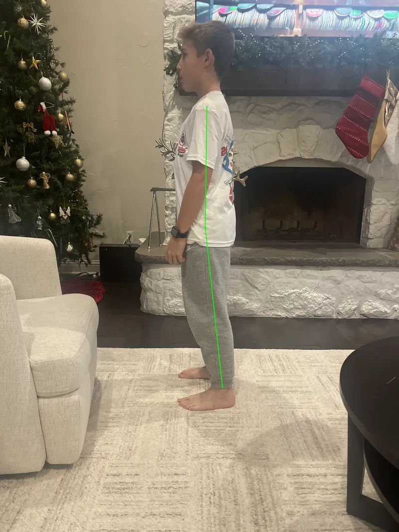 Your ankle/arch score is CAUTION, with your inner ankle-bone angle about 22.06° in standing and 33.85° in the squat. Ideally, we want around 22° for a healthy arch shape. Your arch is collapsing slightly, meaning the ankle is sinking inward. This affects force transfer and can send stress into your knees, hips, or back. When the foundation isn't stable, everything above it has to work harder.